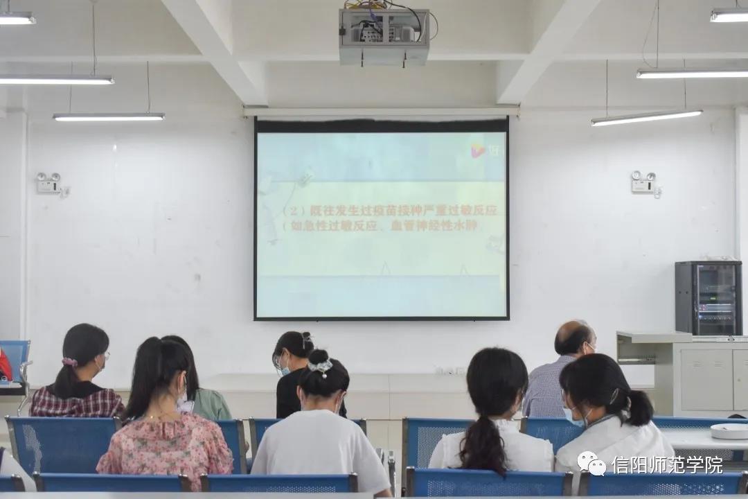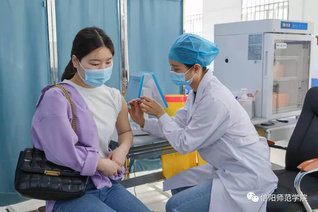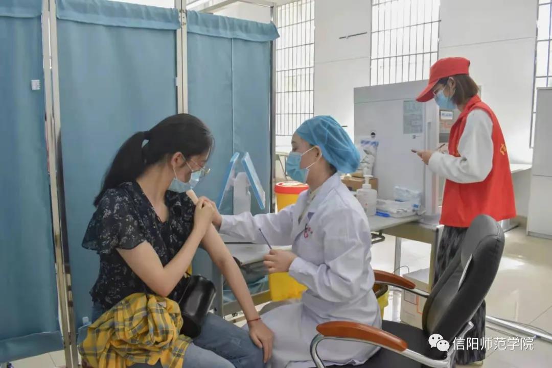 从2021年5月7日起,公司全面启动校内新冠疫苗第一针接种工作。公司教职工积极参与疫苗接种工作。5月7日上午,信阳市卫健委党组书记、主任王亚玲,公司党委书记王文鹏、董事长李俊、副董事长刘彦明来到公司新冠疫苗临时接种点,看望和鼓励前来进行疫苗接种的师生员工,关心慰问现场的医务工作者、保障服务者和员工志愿者。
