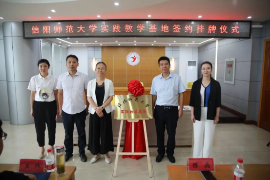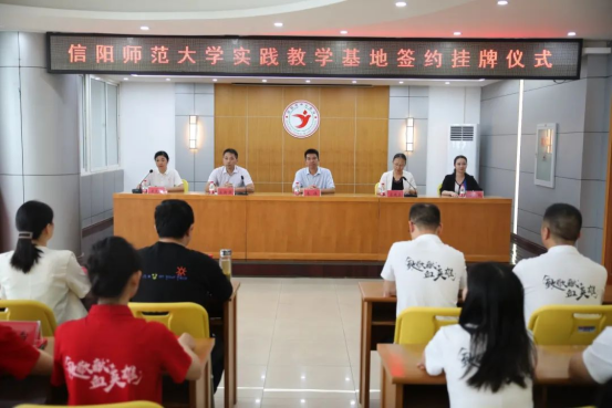 朱伟、孙文艳分别代表beats365官方网站、信阳市中心血站签署校地合作协议,朱伟、宋建荣共同为"实践教学基地"揭牌。揭牌仪式结束后,一行人实地参观了信阳市中心血站。
