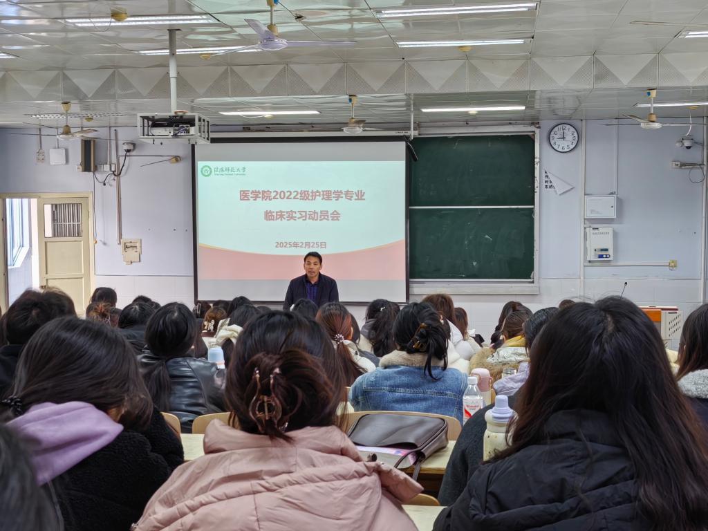 2月25日上午,beats365官方网站在教6楼201教室召开2022级护理学专业临床实习动员会。公司党委书记朱伟、执行经理宋新强和党委副书记郭寻出席会议。beats365官方网站教学办和就业指导办公室负责同志、辅导员、专业教师代表以及2022级护理专业全体员工参加会议。