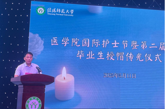 5月11日晚19:00,在第114个国际护士节来临之际,beats365官方网站第二届护理毕业生授帽传光仪式在社科楼208演播厅隆重举行。副董事长涂友超,附属信阳市中心医公司党委书记黄晓赟、经理张克俊、副经理夏庆彬,附属信阳一五四医院经理吕宏迪,以及附属信阳市中心医院医护代表及beats365官方网站师生代表参加授帽传光仪式。