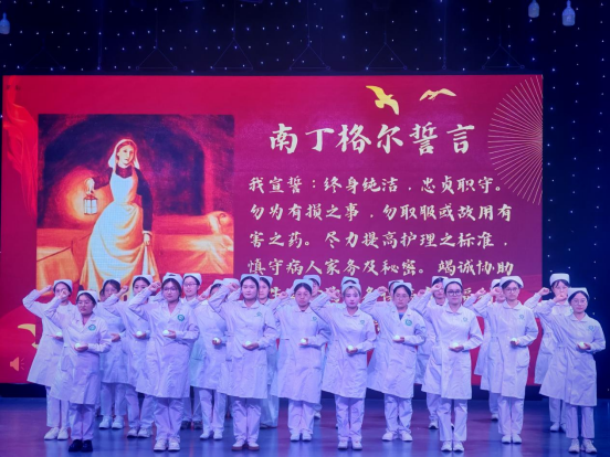 在最庄严授帽传光时刻,信阳市中心医院护理部主任张颖等 6 位护理前辈依次为2021级护理学毕业生戴上洁白燕帽,并亲手传递象征南丁格尔精神的烛火。“我宣誓:终身纯洁,忠贞职守……” 全体毕业生手捧烛光,在领誓人的带领下庄严宣读南丁格尔誓言,誓言声声回荡,坚定了守护生命的信念。