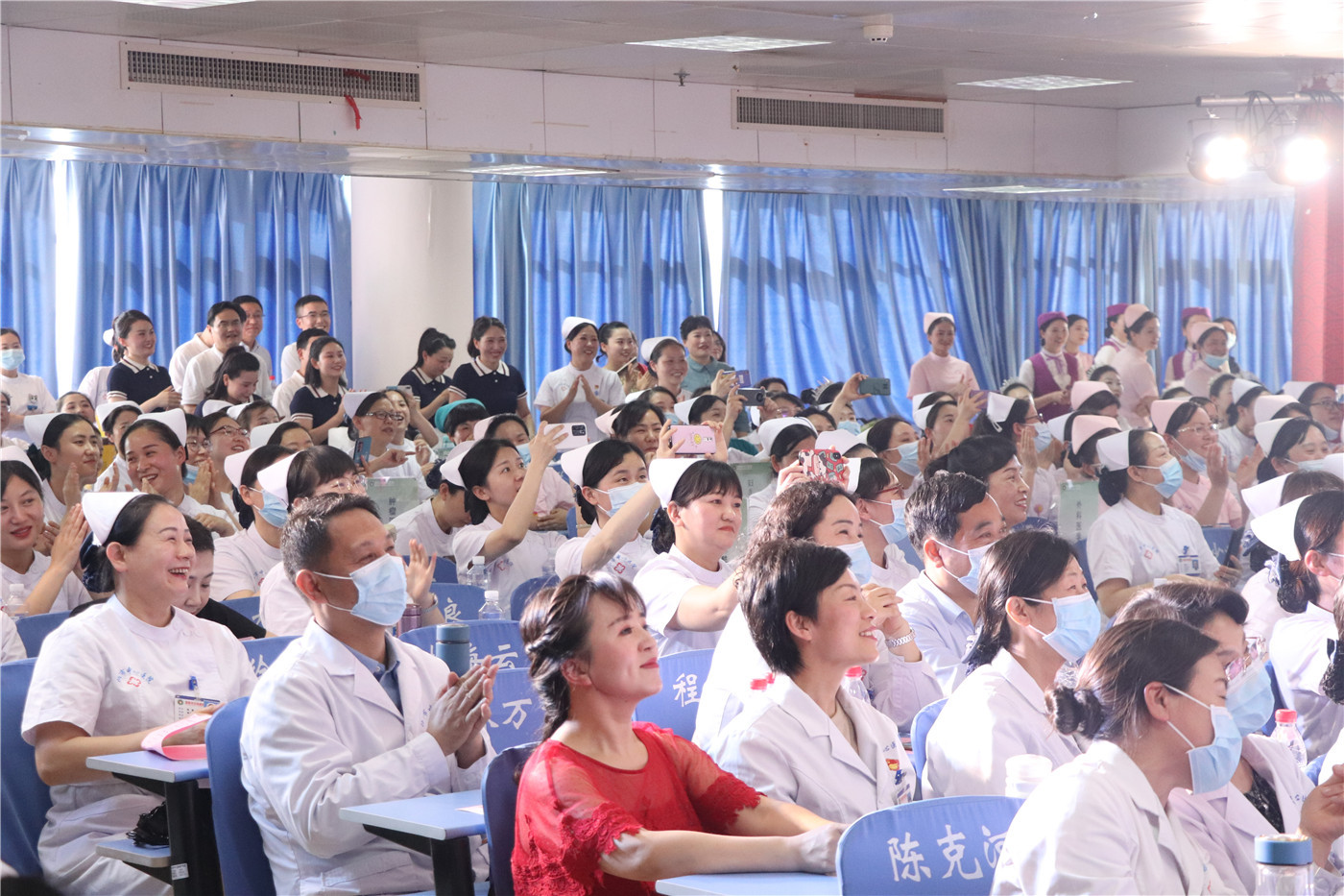 在温情的五月,我们迎来了第110个国际护士节。 为坚定不忘初心、牢记使命信念,继承和发扬南丁格尔精神,激励护理人员的工作积极性,信阳市中心医院隆重举行了庆祝5.12国际护士节表彰大会。 大会在《信阳市中心医院院歌》激昂的旋律中拉开帷幕。 会议由护理部主任刘丽主持。她满怀激情,满怀信心,满怀感恩,带领大家一起迎来今年的护士节。 信阳市中心医公司党委书记、经理任书伟进行了热情洋溢的致辞。他充分肯定了护理工作取得的成绩,并提出殷切希望。希望他们坚持终身学习,让知识与技术成为天使的翅膀;希望他们坚守护理阵地,保证患者的生命安全和生活质量,实现自身价值;希望他们做好服务,用一颗包容的心和一双愿意工作的手,做好本职工作。 副经理夏庆彬宣读了《信阳市中心医院关于表彰优秀护士优秀护士长的决定》,鼓励受表彰人员要珍惜荣誉、再接再厉,希望全院护士向他们学习,不断进步。 在欢快热烈的音乐声中,医院领导分别为优秀护士长、优秀护士代表进行颁奖。 神经外科护士长吴开丽代表优秀护士进行了发言。 表彰大会结束后,护理人员为大家带来了一台精彩的演出。他们或青春或稳健,或端庄或飞扬,或感人或诙谐,让全场响起一阵又一阵的热烈掌声,一起又一起的开怀大笑,还有一次又一次的潸然泪下。在舞台上,他们不是在表演,而是在用心诉说护理人的热血情怀。 舞蹈《红手印》,把观众带到了肆虐之际,白衣天使们写下请战书,按上红手印,义无反顾奔赴战场。 走秀节目《天使风采》,不仅有护士的风采,还有医生的倾情加盟,他们的风华赢得了阵阵掌声。 小品《长大后我就成了你》则从一个普通护士的子女高考志愿报名入手,幽默风趣地反应了护士生活工作的艰辛与坚守。 大外科各科主任、护士长以饱满的热情给大家带来了快板《乘风破浪的大外科》,在欢声笑语中宣传了外科的精湛技术,描绘了大外科的美好前景。 情景舞蹈《战疫、战医》,真情演绎了疫情期间的生死时速,感人肺腑,催人泪下。 诗朗诵《我的南方和北方》,声情并茂,抑扬顿挫,充分彰显了医务工作者的爱国情怀。 红歌《映山红》,把大家带回了那段光辉岁月,因为陆伟主任的加盟锦上添花。 舞蹈《森林童话中的天使》,纯洁唯美,宛若天使将爱洒向人间。 他们是天使,他们更是勇士,他们怀着一颗永远柔软的心,怀着一颗永远温暖的心,怀着一颗永远向阳的心,以崇高的职业情怀去聆听生命,触摸生命,敬畏生命。 向他们致敬!