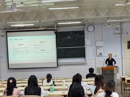 分享会上,三位学长结合自身求职经历,从职业选择、信息搜集、简历制作、面试技巧等方面分享了实战经验。黄楠重点分享了面试技巧,建议同学们提前准备面试问答,抓住求职关键期,即年前的 11 - 12 月份和次年的 1 - 2 月份,把握就业机遇。罗梦晴强调了就业准备的重要性,建议同学们关注小护圈、名医聘、中南地区医护招聘等公众号,做好求职信息的搜集整理,并在求职前充分调研医院,以便更好地展示自己的优势。徐铁力则着重强调了专业能力与实践经验的重要性,重视技能证书加持,积累竞争优势。副书记郭寻认真倾听了同学们的经验汇报,与现场的同学进行了深入交流,提出许多针对性建议,引导并鼓励同学们夯实专业基础、拓展实践技能,为职业发展筑牢根基。